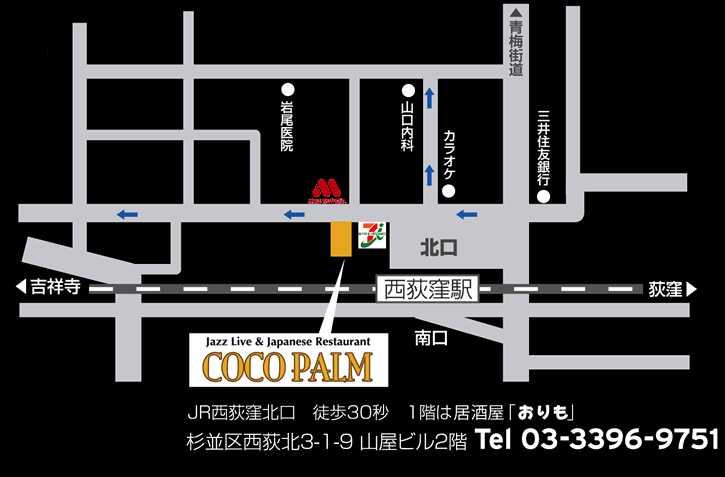 JR西荻窪駅の北口を出て左折、徒歩30秒でCOCO PALMです。